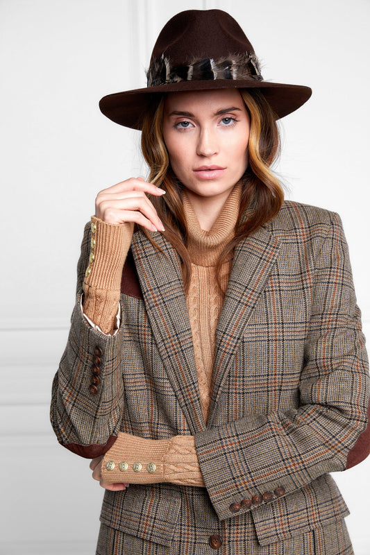 Holland Cooper Trilby Hat Iridescent Feather Band Chocolate