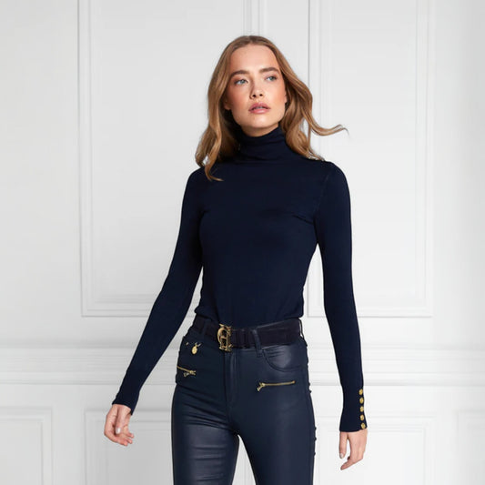 Holland Copper Buttoned Knit Roll Neck Ink Navy