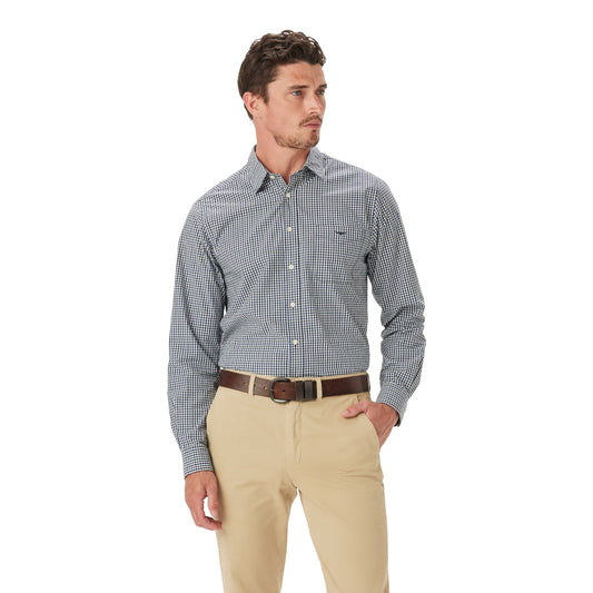 R.M.Williams Classic Poplin Check Shirt Navy Char