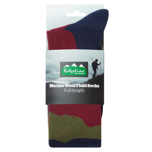 Ridgeline Merino Wool Socks Full Length Berry Stripes
