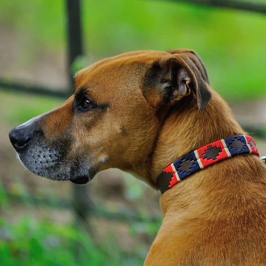 Pioneros Dog Collar - 733 Red/Navy/Cream Stripe