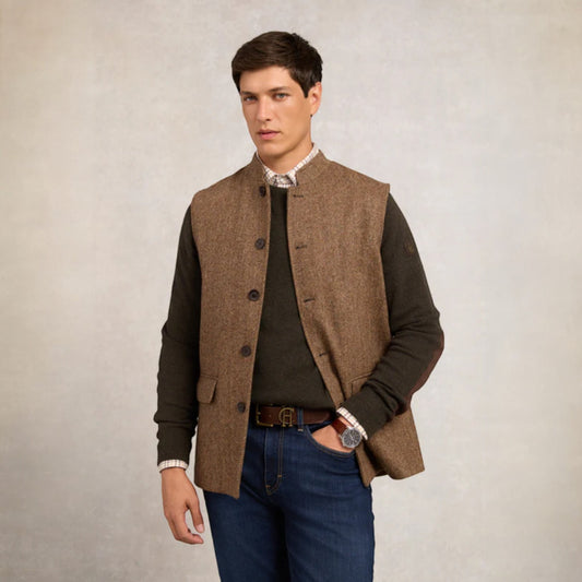 Holland Cooper Men's Nehru Gilet Brown Herringbone