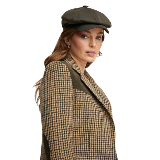 Holland Cooper Baker Boy Tweed Cap Green Wax