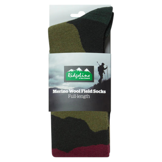 Ridgeline Merino Wool Socks Full Length Berry Stripes