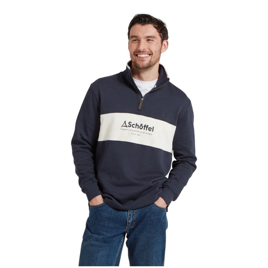 Schoffel Porthmeor Pima Cotton 1/4 Zip Denim Blue