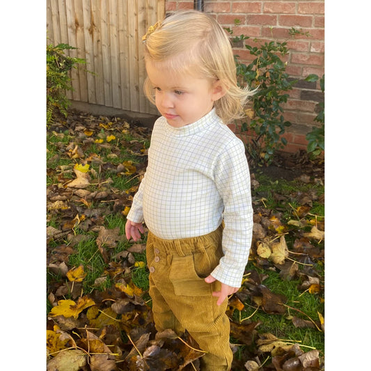 The Little Stamford Co. Tattersall Roll Neck Body Suit / Top - Green
