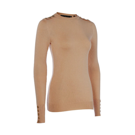 Holland Cooper Buttoned Knit Crew Neck Dark Camel