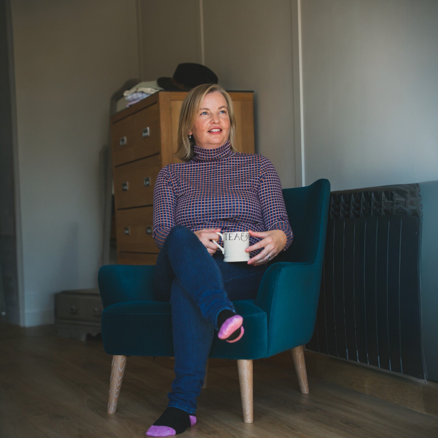 Ginger & Jardine Cosy Roll Neck Navy and Orange